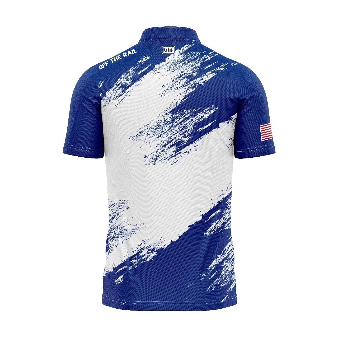 Make a bold statement with the OTR Brushstroke Polo. This isn't just another dart shirt; it's a wearable piece of art. Featuring a dynamic blue and white "brushstroke" pattern, this polo is designed for players who dare to stand out.